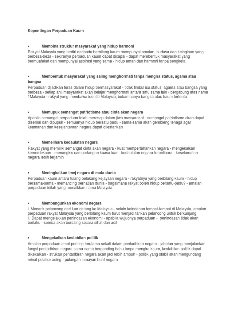 Kepentingan Perpaduan Dalam Kalangan Masyarakat Pdf
