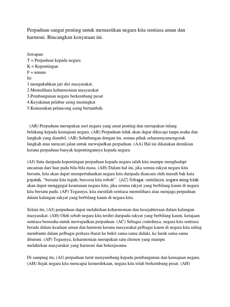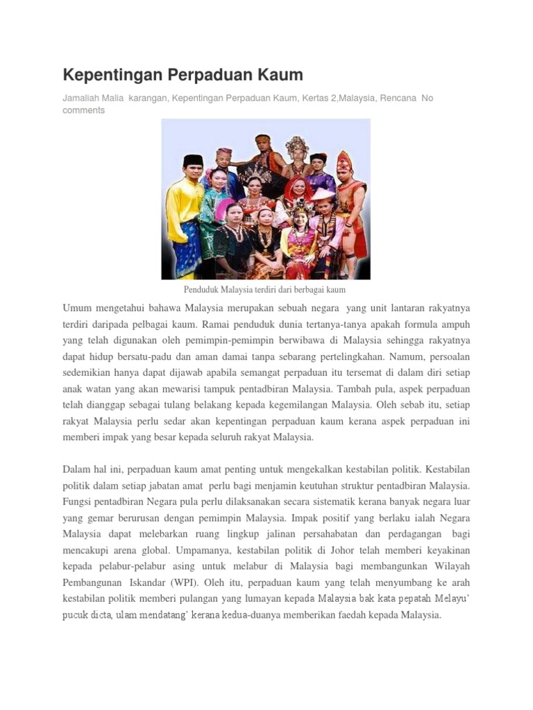 Contoh Karangan Kepentingan Perpaduan Kaum Di Malaysia Pdf